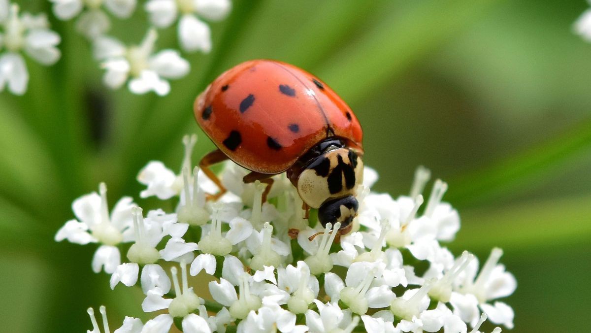 Ein Asiatischer Harlekin-Maienkäfer kann pro Tag bis zu 250 Blattläuse vertilgen. Der heimische Marienkäfer schafft ca. 50 pro Tag.