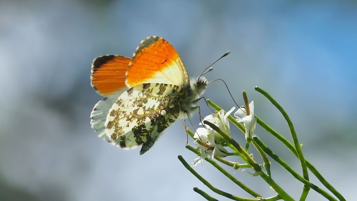 Der Aurorafalter legt seine Eier nur auf Kreuzblütern wie etwa Schaumkräutern ab.