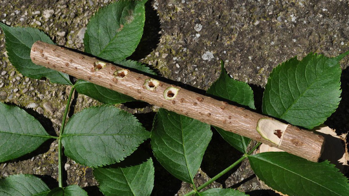 Mit etwas Geschick ist so ein Hollerpfeiferl schnell gebaut. Es braucht keine Batterie, kostet nichts und man kann mit etwas Übung kleine Melodien nachpfeifen.