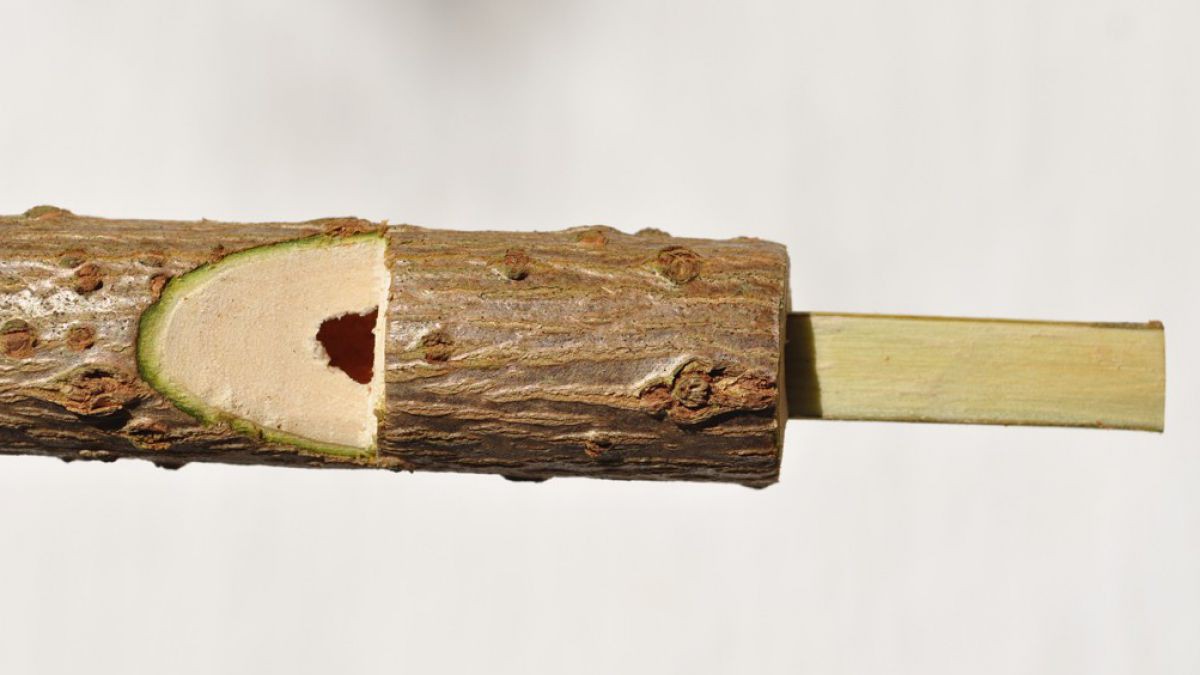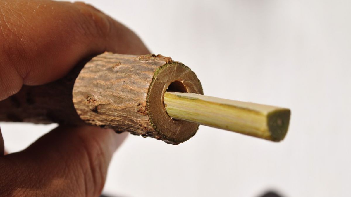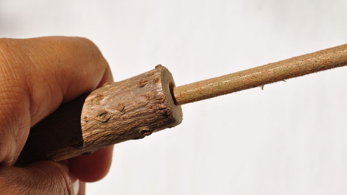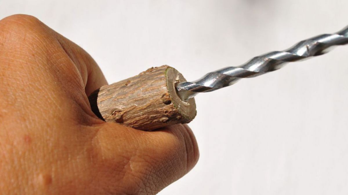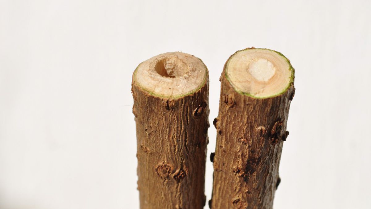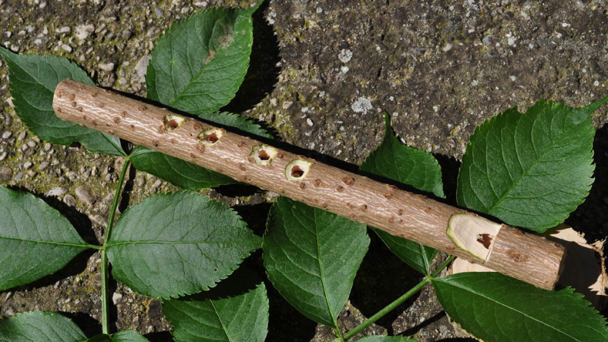 Entfernen Sie das Mark aus den Ästen. Am besten funktioniert das mit einem Draht, einem Mauerbohrer oder dem Langtrieb einer Hasel – sämtliche Markreste herauskratzen.