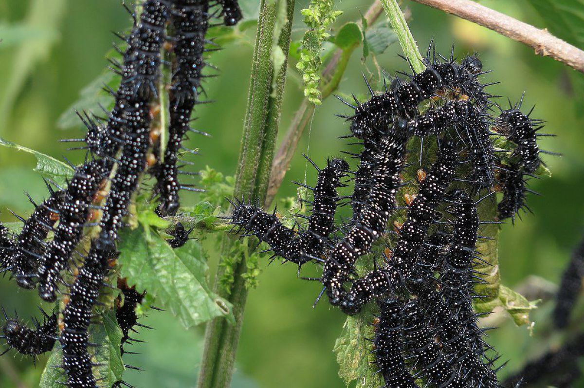 Die Raupen des Tagpfauenauges ernähren sich ausschließlich von Brennnesseln.