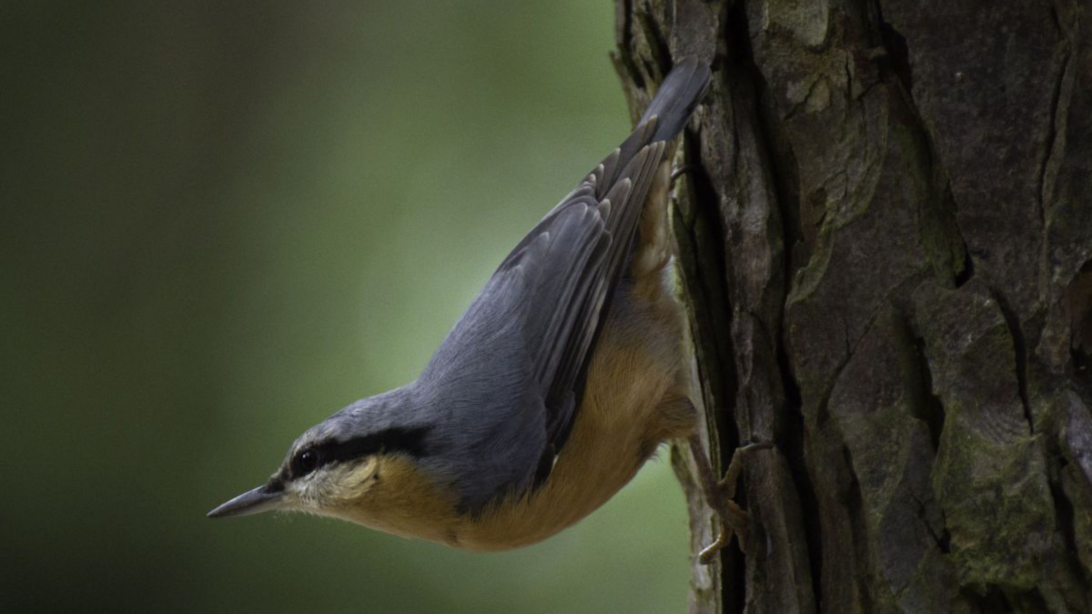 Der Kleiber kann auch kopfüber auf Baumstämmen klettern.