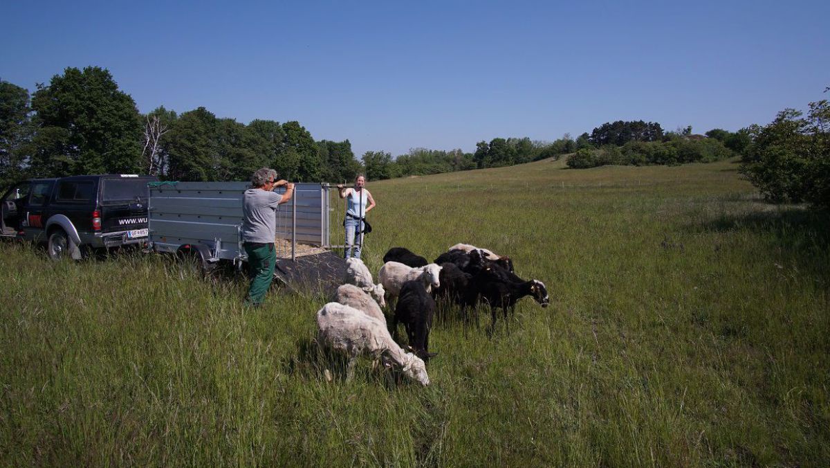 Rund 120 Schafe helfen mit, wertvolle Wiesenstandorte an March und Thaya von Bewuchs freizuhalten.