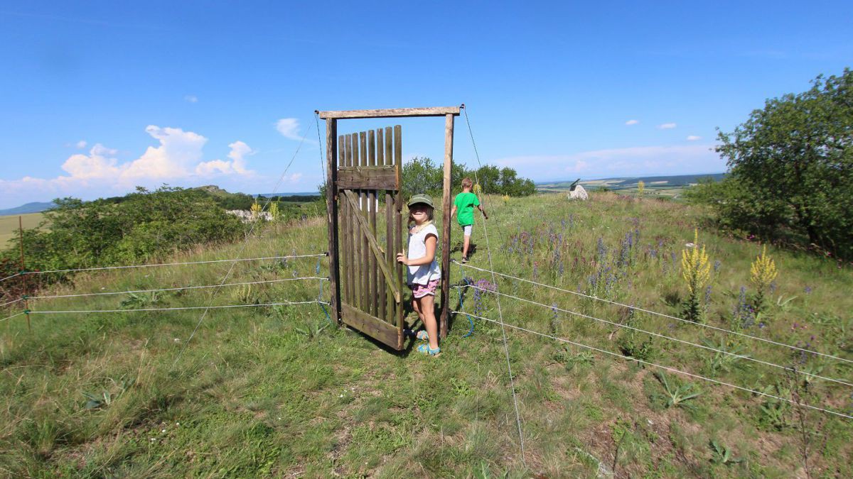 Auf den Felsrasen rund um die Ruine Falkenstein steht seit kurzem ein Türstock samt Holztür. Aufgrund seiner schlichten Machart fügt er sich perfekt in die Kulisse vor der Burg ein und ist für sich genommen ein Kunstwerk. Der Grund für diese „Installation“ ist jedoch ein praktischer: Um einerseits die Ziegenweide teilen zu können, andererseits die Wege für die Wanderer passierbar zu machen, entschieden sich der kreative Tierhalter und Falkensteiner Helfer kurzum dazu, die Durchlässigkeit mittels eben jener Tür zu gewährleisten.