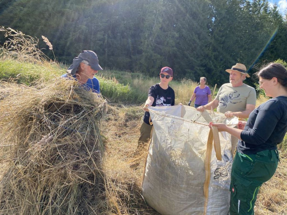 Ein großes Problem ist die mühsame und schließlich häufig aufgelassene Bewirtschaftung der umgebenden Wiesen, wodurch diese verbuschen und deren naturschutzfachliche Bedeutung wesentlich abnehmen würde. Im Zuge eines Pflegeeinsatzes wurde deshalb ein Teil der begleitenden Feuchtwiesen gemäht, um ein dauerhaftes Zuwachsen der schwierig zu pflegenden, oft feuchten Bereiche zu verhindern, die Strukturvielfalt zu erhöhen und das aufkommende Reitgras zurückzudrängen. Der Einladung zum Mithelfen folgten rund 15 Naturschutzinteressierte, welche beim Sammeln des Mähguts sowie beim Vorbereiten für den Abtransport tatkräftig unterstützten.