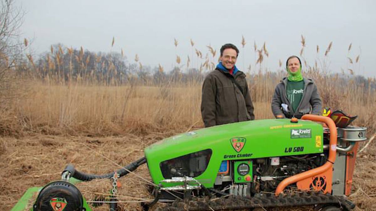 Mit einem neuartigen ferngesteuerten Wiesenmulcher mit Raupenantrieb konnten wertvolle Feuchtwiesen im Europaschutzgebiet Feuchte Ebene gemäht werden.