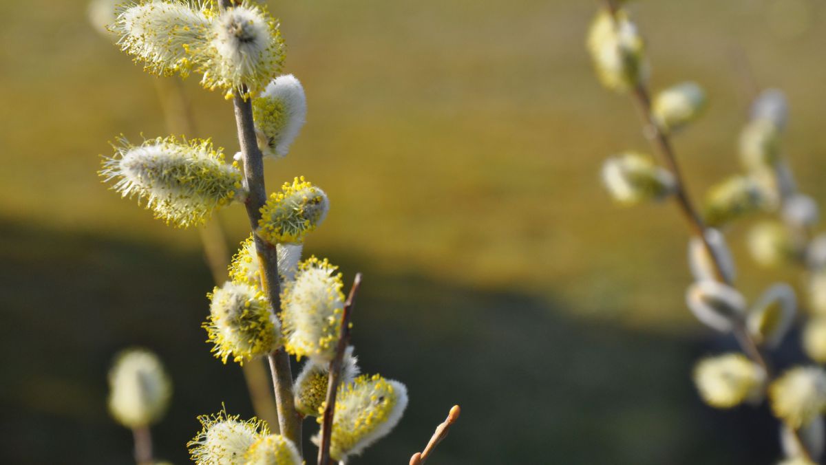 Palmkätzchen von heimischen Weiden gehören im Frühjahr zu den ersten Futterpflanzen für Wildbienen.