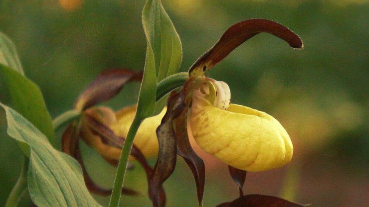 Die Laubblätter des Frauenschuhs leiten an Längsfalten das Regenwasser zum Stängel hin ab.