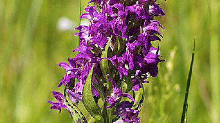 Die Blüten der Breitblatt-Fingerwurz sind hell- bis dunkel-purpurn mit dreilappiger Lippe.