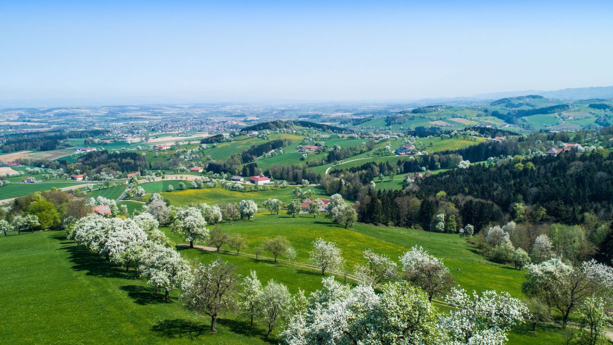 Die Obstbaumblüte im Frühjahr überzieht das Mostviertel mit einem weißen Mantel.